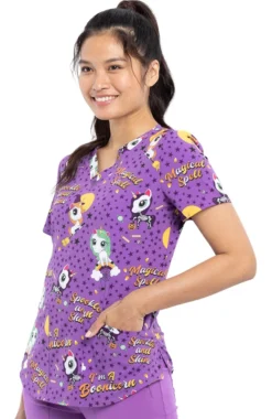 Add some spooky fun to your fall workwear with the Fashion Prints by Cherokee Women’s Boo-Nicorn Magic Print Scrub Top. This beautiful, brilliantly colored print features charming Halloween characters.