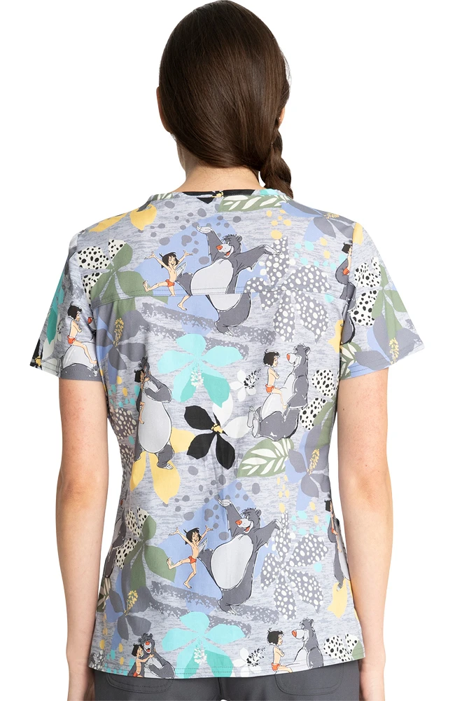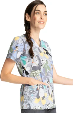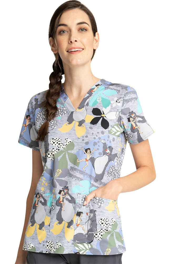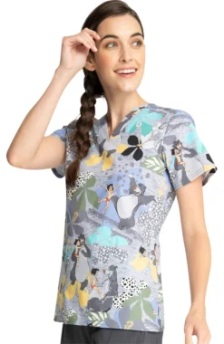 Forget your worries and focus on the bare necessities in the Tooniforms by Cherokee Women’s Boogie Bear Print Scrub Top. Two roomy front pockets finish the look of this friendship-themed scrub top.