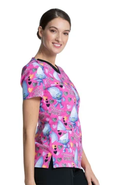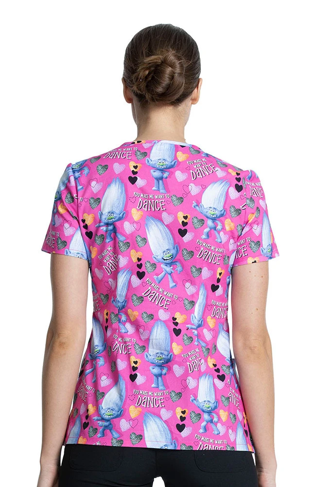 Enjoy the Tooniforms by Cherokee Women’s Diamond Dance Print Scrub Top’s 3 convenient pockets and flexible side vents at the hemline. The contrast, mandarin collar creates a sweetheart effect that truly makes your look pop.