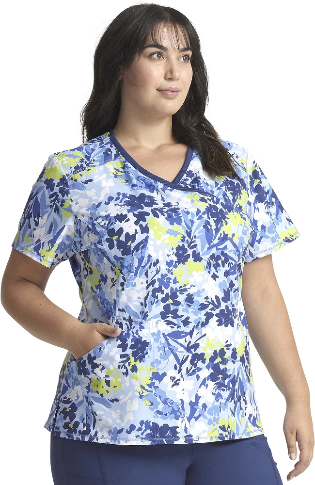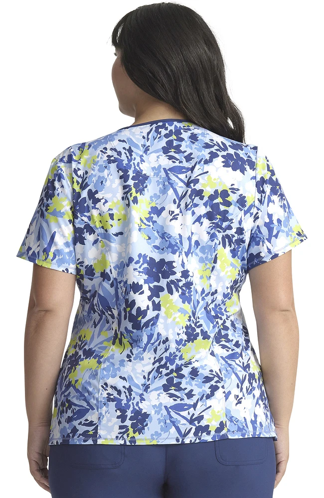 The Infinity by Cherokee Women’s Mock Wrap Brushstroke Buds Print Scrub Top is a modern, standout scrub top that works just as great as it looks. Plus, it’s designed with flattering princess seams and functional pockets for your essentials.