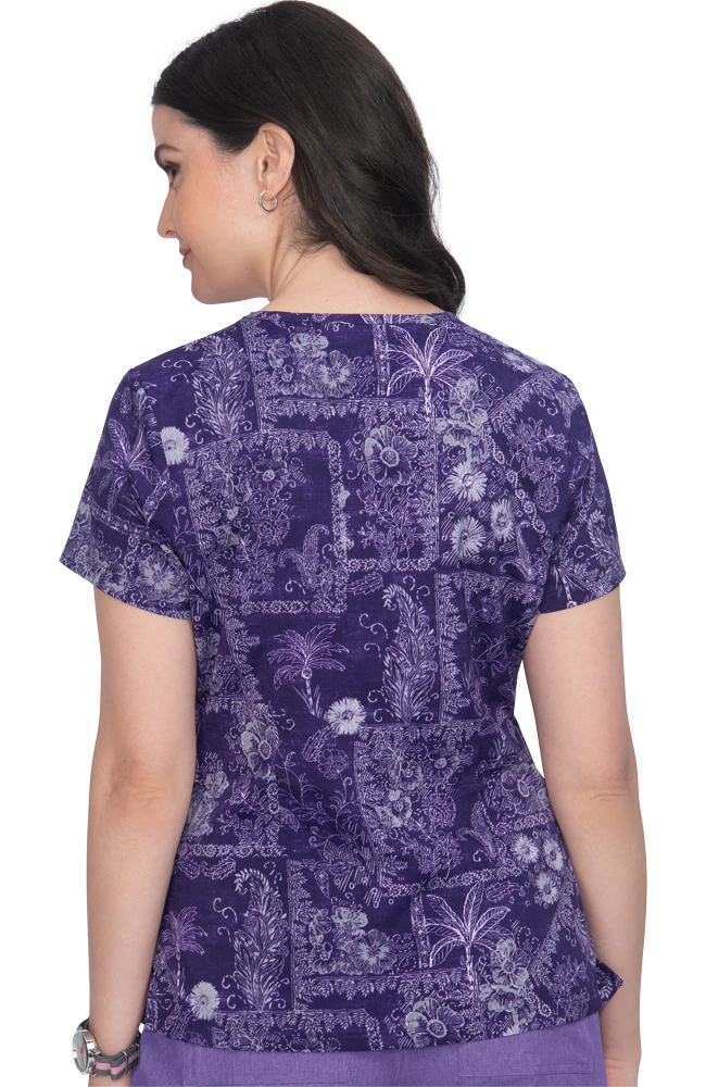 Refresh your workwear look with the Leslie Denim Patch Print Scrub Top from koi Basics. This classic and comfortable v-neck scrub top combines lightweight, breathable fabric with unique prints that are so fun to wear.