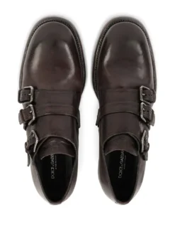 distressed-effect monk strap shoes