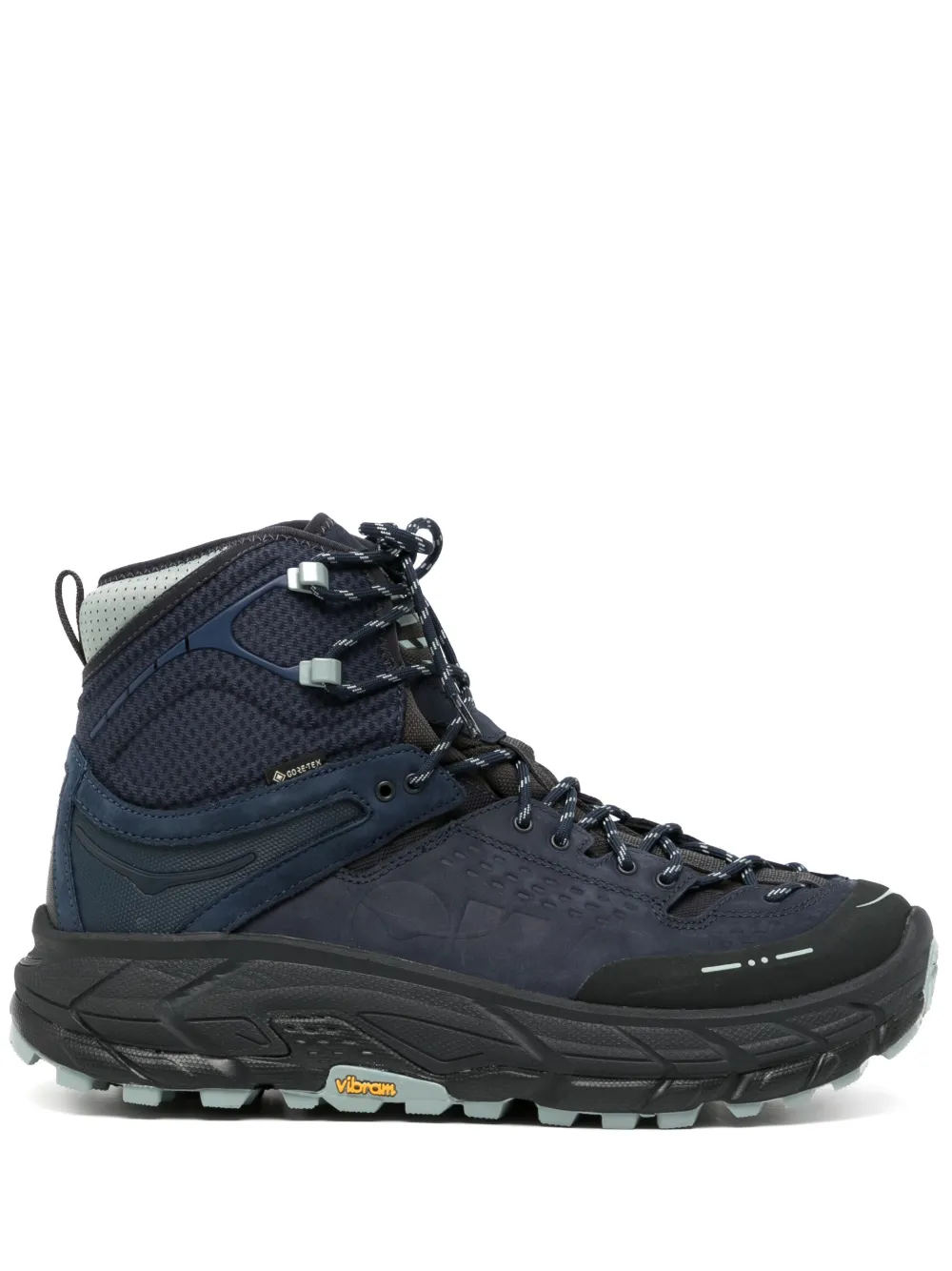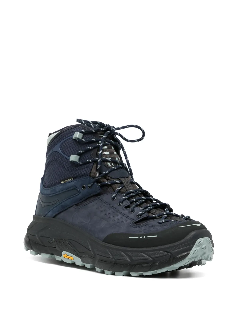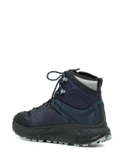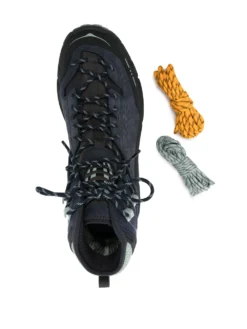 Teaming up with J.L -A.L, Hoke One One presents the Tor Ultra High sneaker boots in an understated midnight blue colourway. Inspired by the harshness of desert landscapes and the aurora borealis, the collaborative style boasts a distinct utilitarian appeal with its GORE-TEX construction and Vibram® sole.