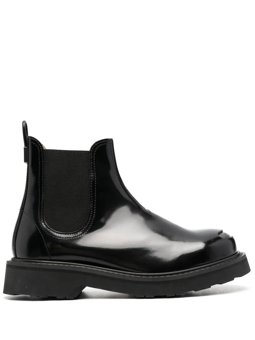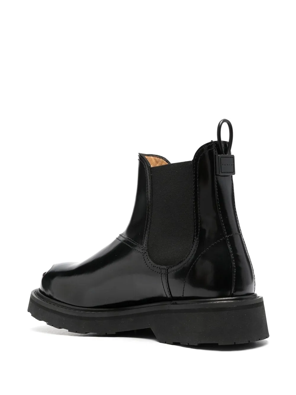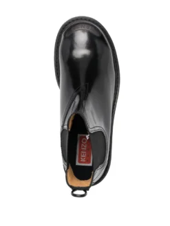 40mm chunky leather boots from KENZO featuring jet black, calf leather, pull-tab at the heel, elasticated side panels, round toe and mid block heel.