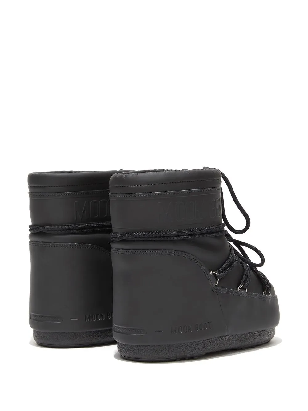 Icon Glance low snow boots from MOON BOOT featuring black, padded design, embossed logo to the side, front lace-up fastening, round toe and flat rubber sole.