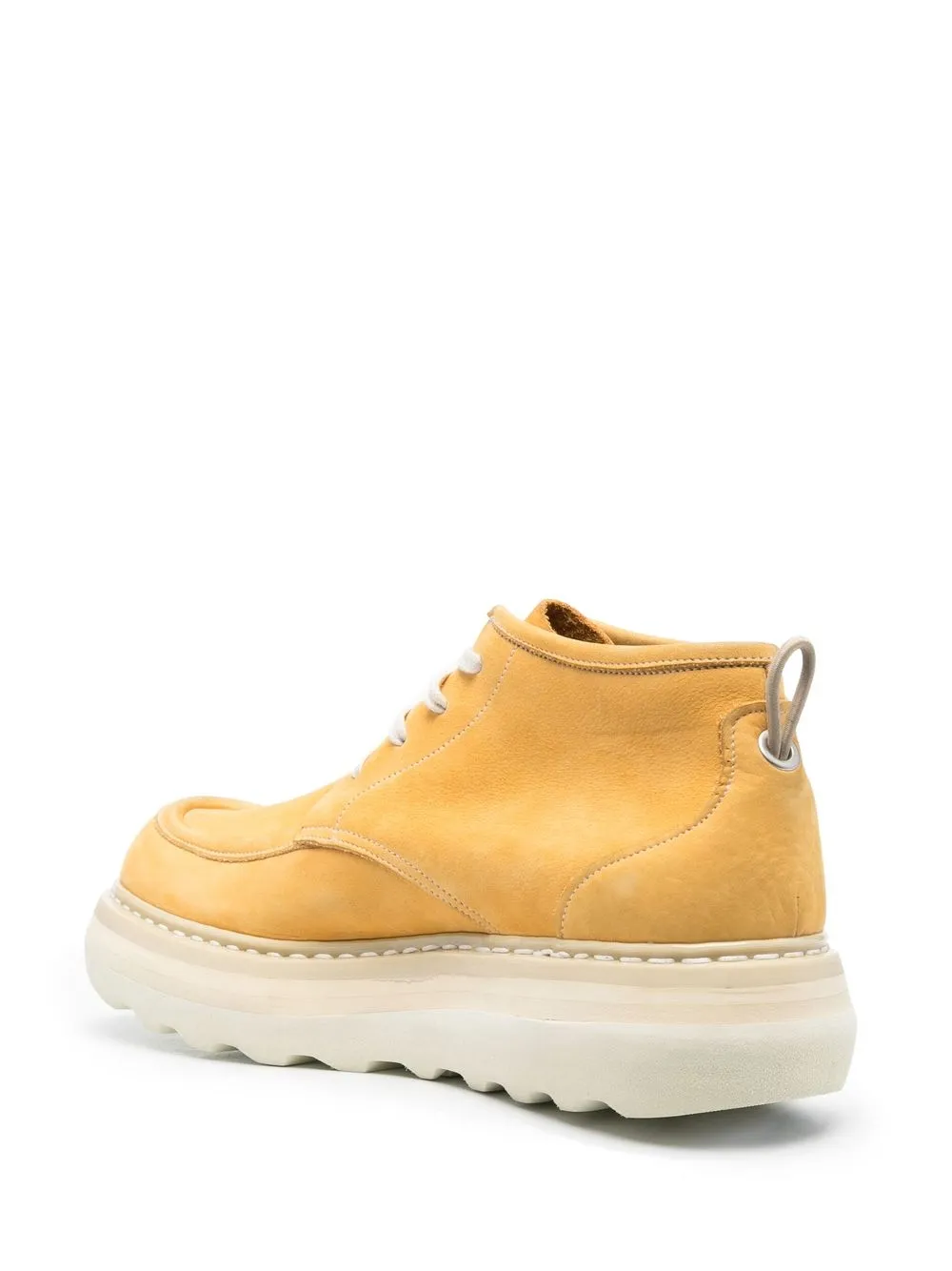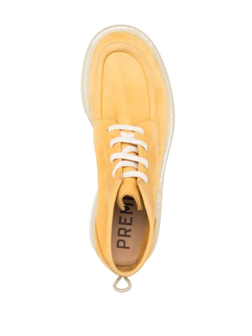 lace-up ankle boots from PREMIATA featuring yellow, calf leather, panelled design, ankle-length, front lace-up fastening, pull-tab at the heel and chunky rubber sole.