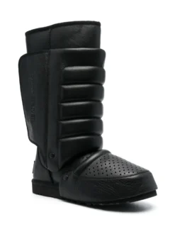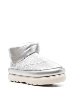Ultra Mini suede boots from UGG featuring camel brown, wool blend, lambskin, recycled polyester, logo patch to the rear, pull-tab at the heel, shearling lining, round toe, slip-on style and flat rubber sole.