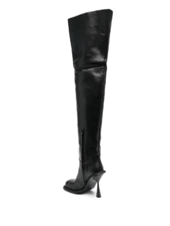 square-top thigh-high boots from ANDREADAMO featuring black, calf leather, square toe, high sculpted heel, thigh-high and side zip fastening.