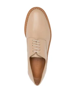 Brook leather derby shoes from CLERGERIE featuring beige, white, leather, almond toe, front lace-up fastening, branded leather insole and chunky rubber sole.