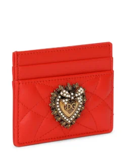 Candy-red lamb skin logo-plaque quilted cardholder from DOLCE & GABBANA featuring gold-tone logo plaque, quilted and card slots.