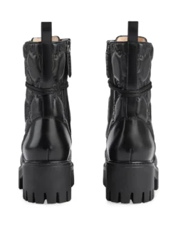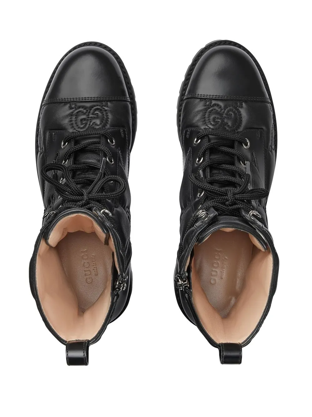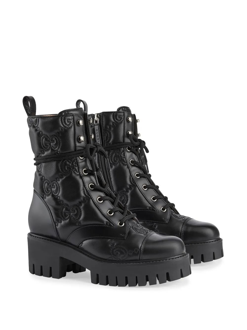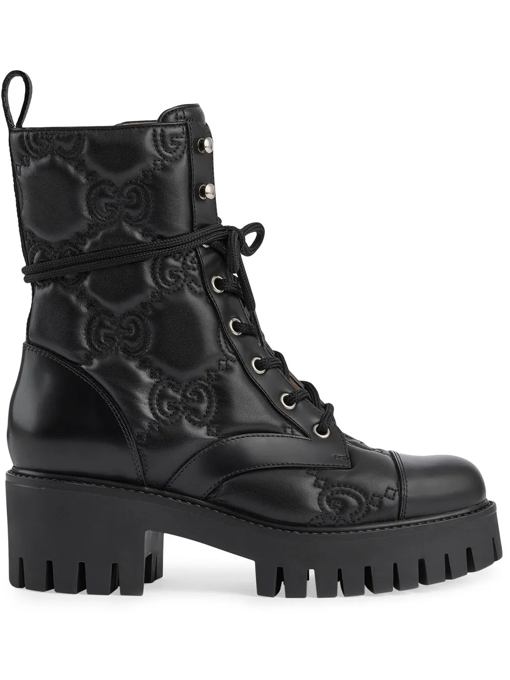 Inspired by mountain wear, these ankle boots from Gucci boast a chunky silhouette that’s further enhanced by a rubber lug sole. Rendered in black GG Matelassé quilted leather, they’re complete with hiking-inspired laces.