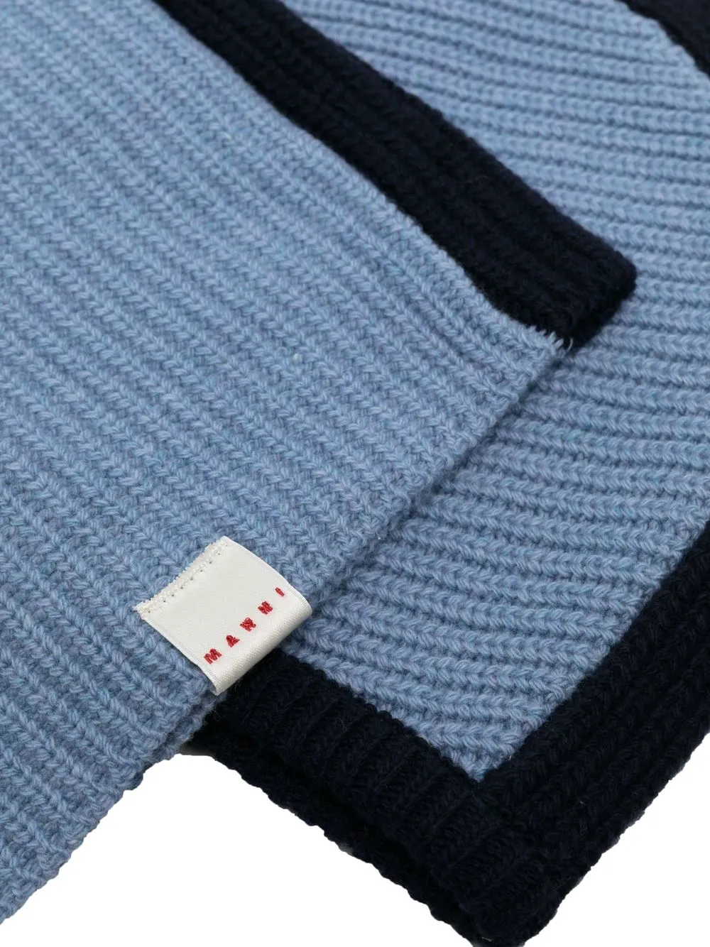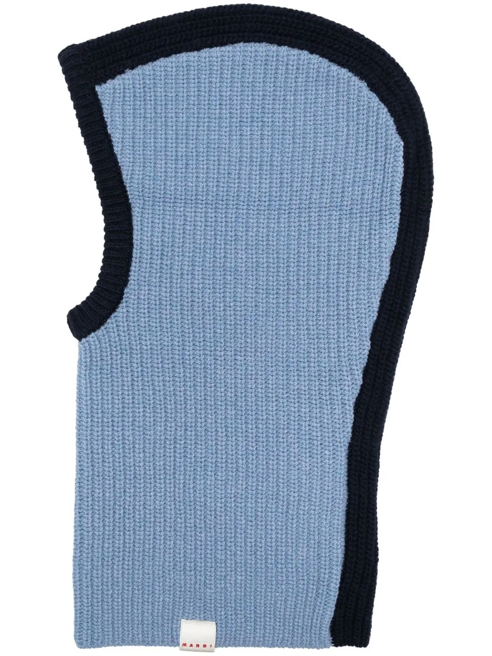 two-tone wool balaclava from MARNI featuring navy blue, light blue, virgin wool, knitted construction, two-tone design and cut-out detailing.