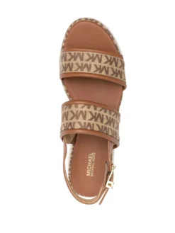 Ebony brown leather Presley Platform Sandals from MICHAEL MICHAEL KORS featuring all-over logo print, double-strap design, buckle-fastening ankle strap and platform sole.