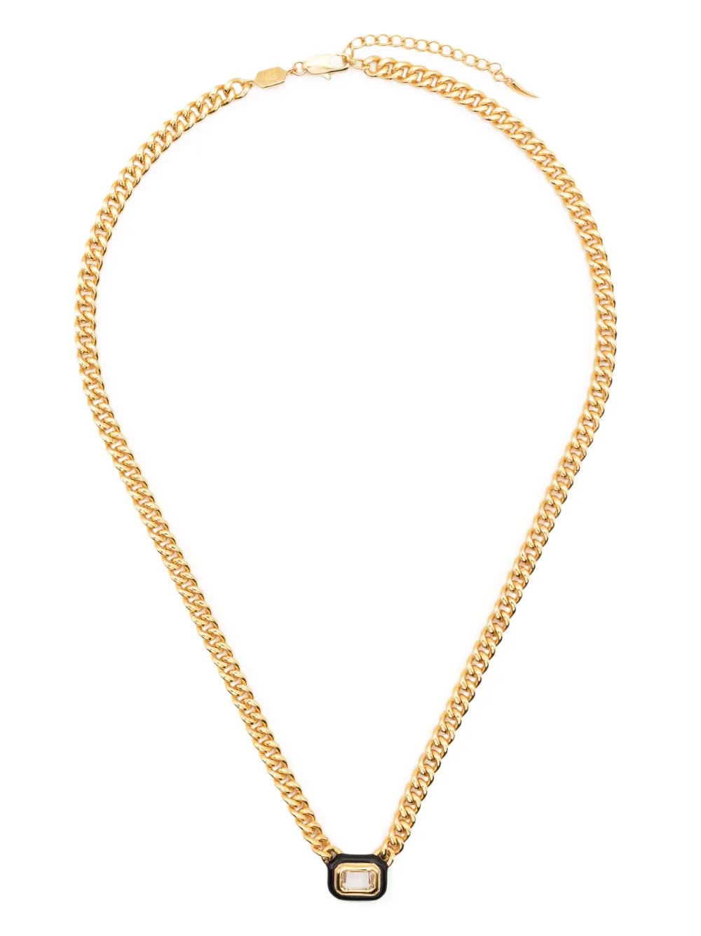 stone-detail chain necklace from Missoma featuring gold-tone, engraved logo, curb chain, stone pendant, adjustable-length chain and lobster claw fastening.