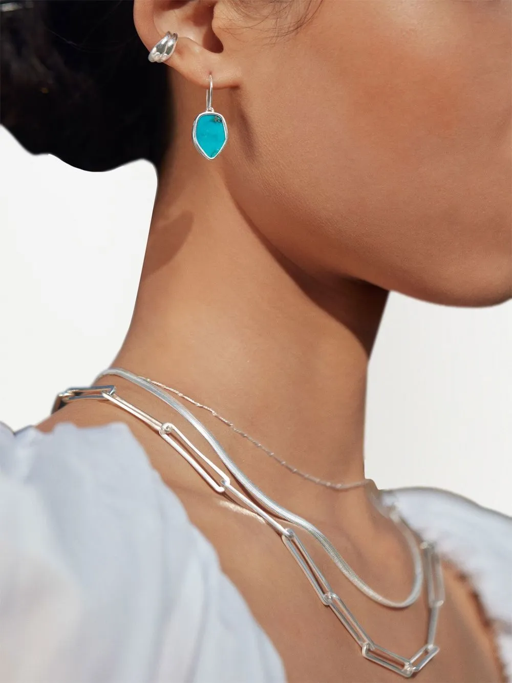 Atlantis Flint drop earrings from MONICA VINADER featuring recycled silver, turquoise, engraved logo and hinge-pin fastening. These earrings come as a pair.. Every handcrafted Monica Vinader piece comes with a five-year warranty.. Normal everyday use and external agents may reduce the lustre of gemstones and gold surfaces. To maintain, use specific, non-abrasive products specially meant for cleaning jewellery.. Conscious: We’ve partnered with Good On You – an ethical agency that rates how sustainably brands perform. This item comes from a brand that performs well in relation to their impact on the planet..