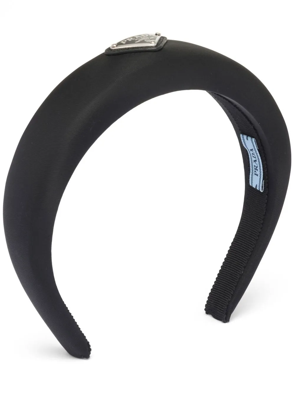 Following the brand’s sophisticated aesthetic, this oversized puffy headband from Prada’s AW22 collection is made of black Re-Nylon – a regenerated nylon yarn (ECONYL®). Its design is hypoallergenic and nickel-free and is completed with an enamelled metal triangle logo on top.