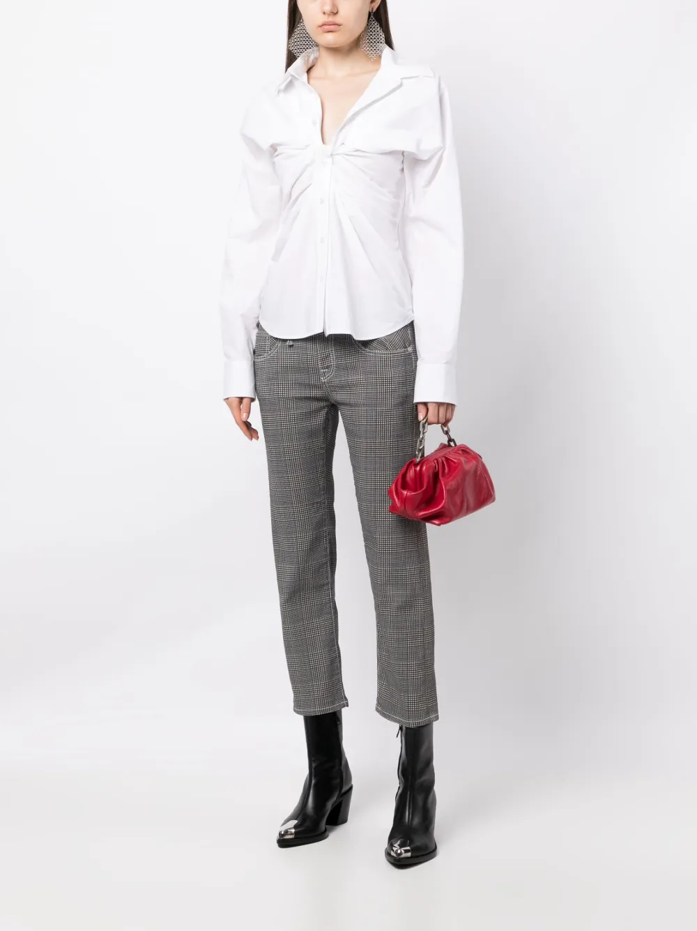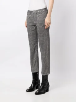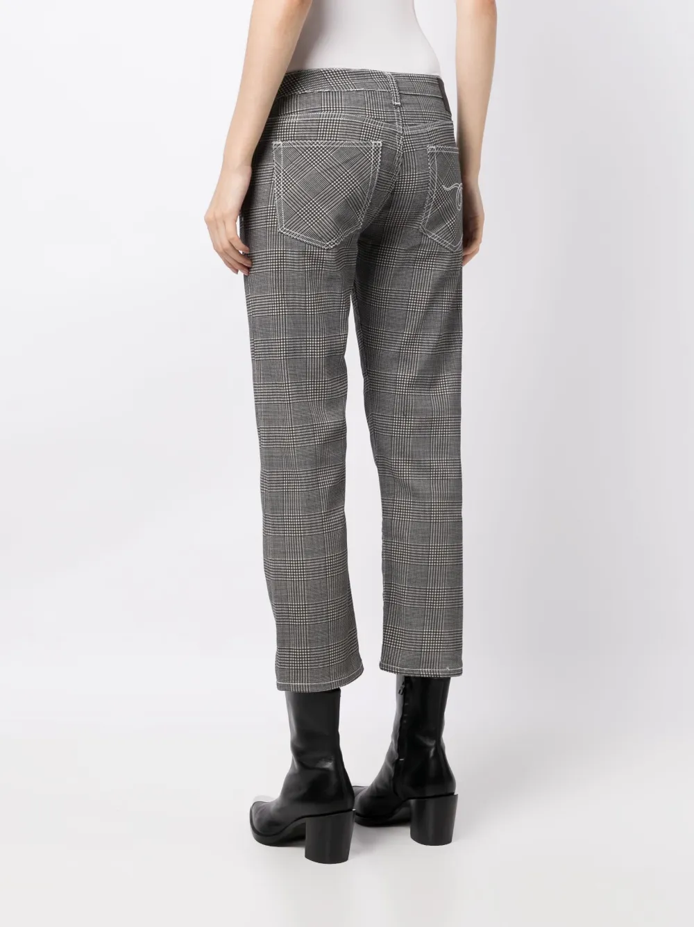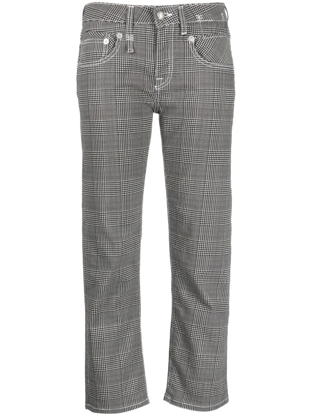 check-print low-waist cropped jeans