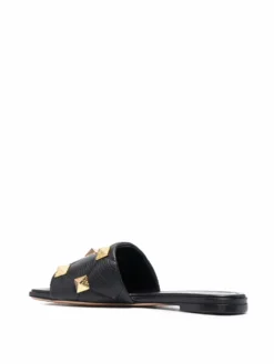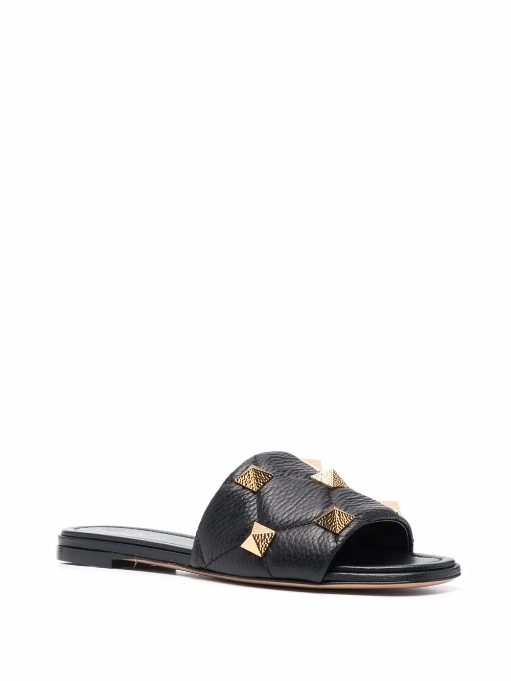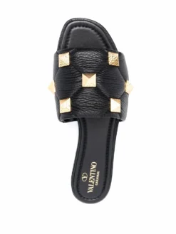 Valentino Garavani brings their bold Roman Stud signature to this pair of flat sandals constructed from black leather and made expertly in Italy.